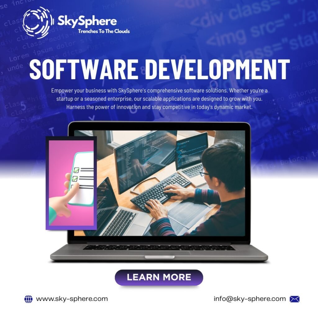 SkySphere delivers comprehensive software solutions built to support businesses at every stage of growth. From startups to established enterprises, our applications are designed with scalability, security, and performance at their core.